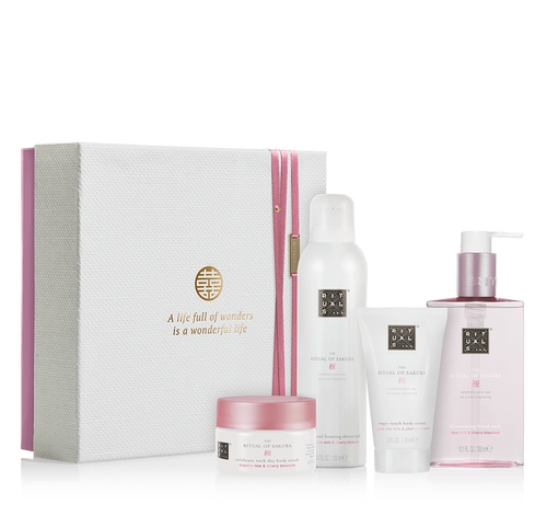 Me declaré fan de esta gama desde que la probé en uno de los exfoliantes que entraba en los regalitos de una de las revistas de hace años y siempre que puedo repito por lo que me parece que este magnífico cofre es el detalle perfecto. Contiene una espuma de ducha, un exfoliante corporal, una crema corporal y jabón de manos, con aromas de la flor el cerezo y la leche de arroz.